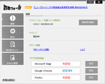 | ソフトウェアの名称 | 詐欺ウォール / Internet SagiWall | みやブル |