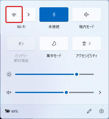 Wi-Fiアイコンが白くなっている場合はWi-Fiが無効になっています。