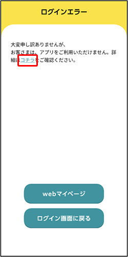 「詳細はコチラをご確認ください。」の〔コチラ〕を押すと、「ログインに関するよくあるご質問」をご確認いただけます。