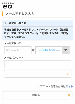 | 現在のメールパスワード | 「現在ご利用中のメールパスワード」※半角入力 |