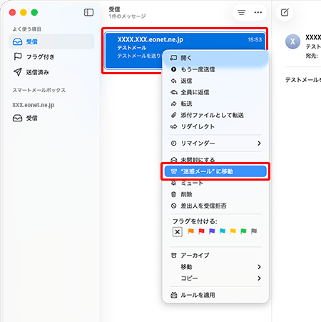 1. 〔任意のメール〕を右クリックして、メニューを表示させます。