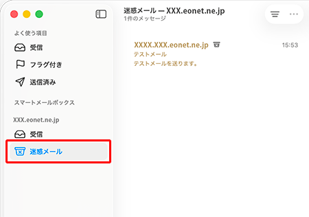 2.サイドバー(メールボックスリスト)の「メールボックス」欄に「迷惑メール」が表示されていることを確認します。