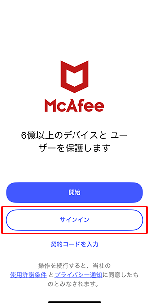 | パスワードを入力 | マカフィーアカウントに設定した「パスワード」 ※半角入力 |