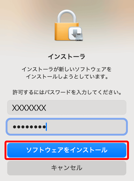 ご利用の「ユーザー名」と「パスワード」を入力し、〔ソフトウェアをインストール〕をクリックします。