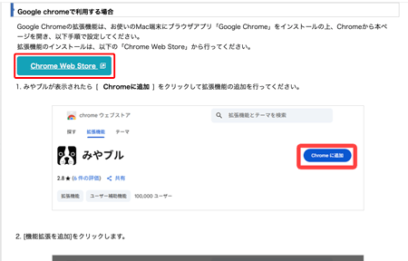 Google Chrome画面内の〔Chrome Web Store〕をクリックします。