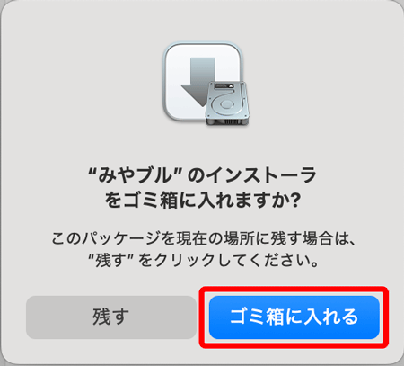 〕を押し、〔miyabullmac_partner_5.0.1.pkg〕をダブルクリックします。