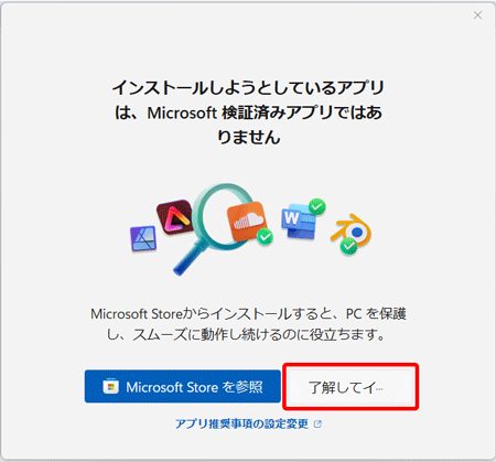 以下の画面が表示された場合は、〔了解してインストールする〕を押します。