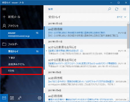 メールを設定後に受信トレイなどのフォルダーが表示されない場合は、フォルダーを表示させる設定が必要です。