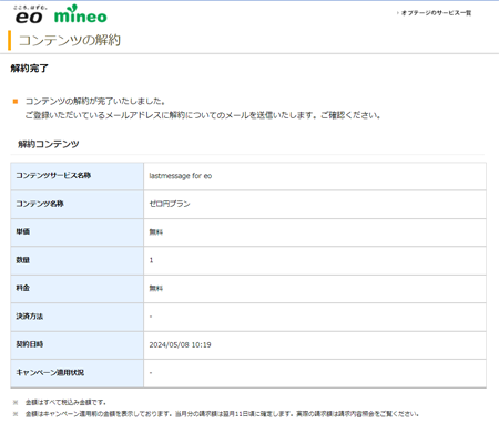 ゼロ円プランの解約が完了します。