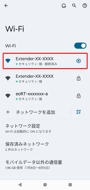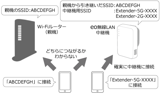 中継用SSIDは、5GHz用の〔5G〕と2.4GHz用の〔2G〕の 両方が発信されます。ご利用の環境に応じてどちらかを選択してください。