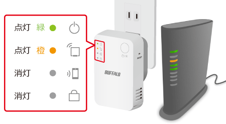 約1分後、中継機のランプが以下の状態になっていることを確認します。