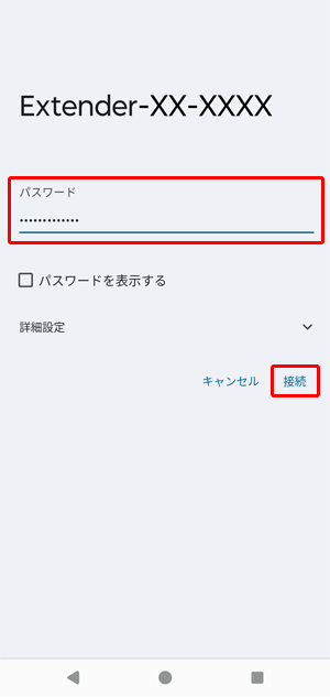 〔パスワード〕に「STEP1」で確認した「暗号化キー」を入力し、〔接続〕をタップします。