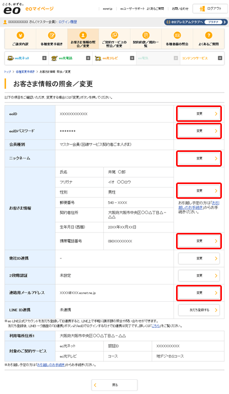 登録されているお客さま情報は、eoマイページから変更いただけます。